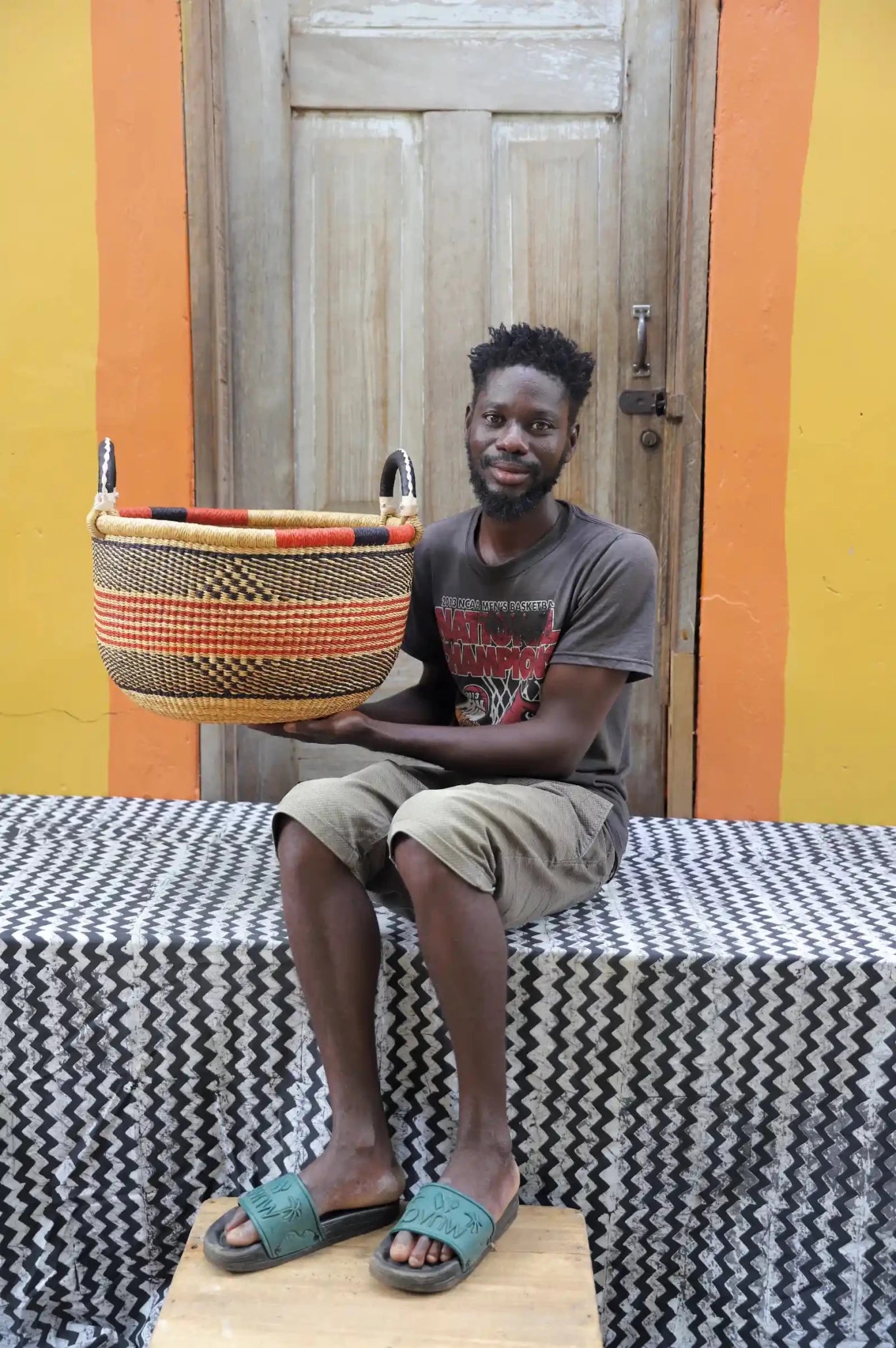 Gbenka,得名于用于过滤皮托(一种深受喜爱的小米酒)的传统筛子,是加纳上东部地区最早编织的篮子之一。它象征着热情好客和社群精神,承载着共享喜悦的氛围。如今,它被重新设计成实用的储物容器,用来盛放水果、纺织品或珍藏品。
