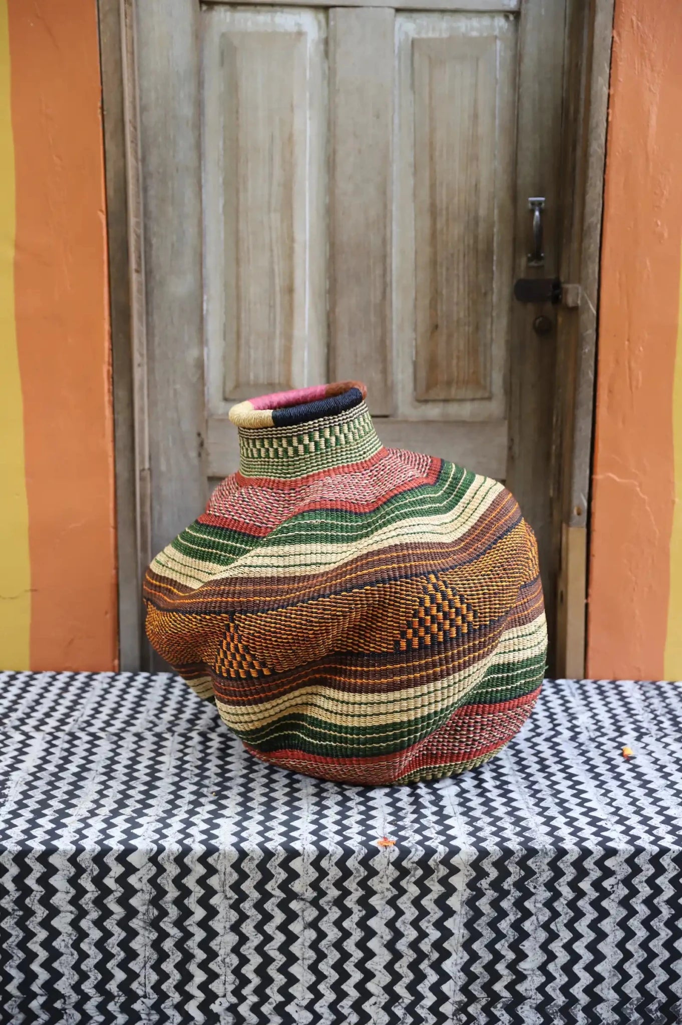 Pue-oh源自当地一种奇特的树木,这种树以其硕大的叶片和有毒的汁液而闻名。它的果实不可食用,但裂开后,会释放出轻盈蓬松的种子——宛如蒲公英——随风飘荡,播撒新的生命。Pue -oh篮子的设计灵感正是源于这种自然奇观,它既是一件雕塑艺术品,又为任何空间增添了一抹自然的魅力。